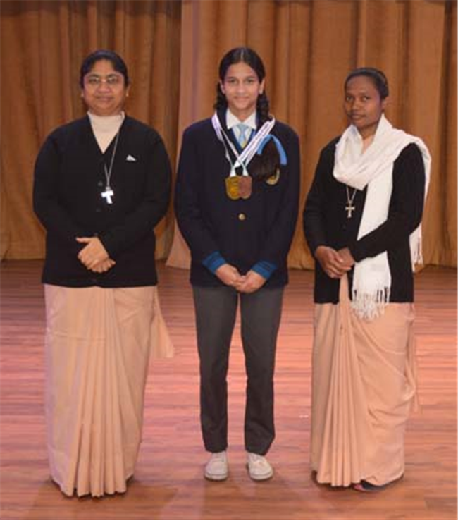 Bhavya Gautam of 9D participated in the U16 Girls 600m Race. She secured the 1st position and was awarded with a gold medal.