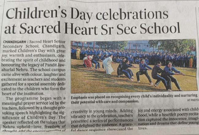Sacred Heart Senior Secondary School, Chandigarh, marked Children’s Day with great joy, warmth and enthusiasm, celebrating the spirit of childhood and honouring the legacy of Pandit Jawaharlal Nehru. The school campus came alive with colour, laughter and excitement as teachers and students gathered for a special assembly dedicated to the children who form the heart of the institution. The programme began with a meaningful prayer service led by the teachers, followed by a though-provoking speech highlighting the significance of children’s Day. The speaker reflected on the values that Nehru upheld-love, freedom of thought, and the encouragement of creativity in young minds. Adding vibrancy to the celebration, teachers presented a series of performances that delighted the audience. A graceful dance sequence showcased the joy and energy associated wirh childhood, while a heartfelt poetry recitation captured the innocence, imagination and dreams that define young lives.